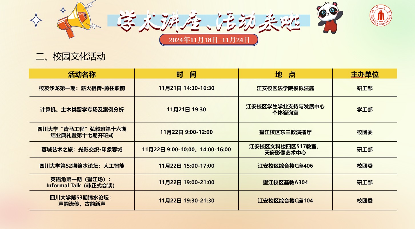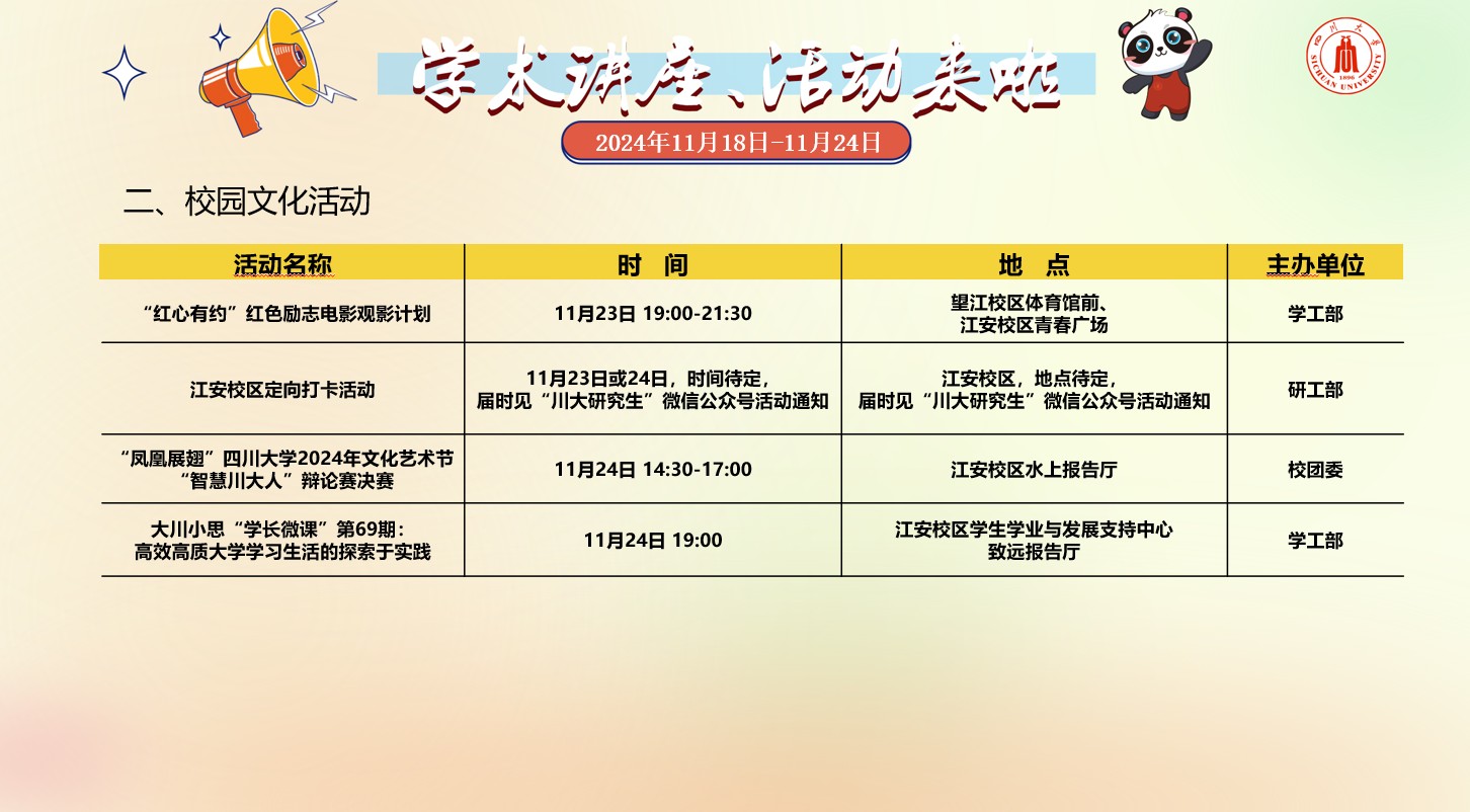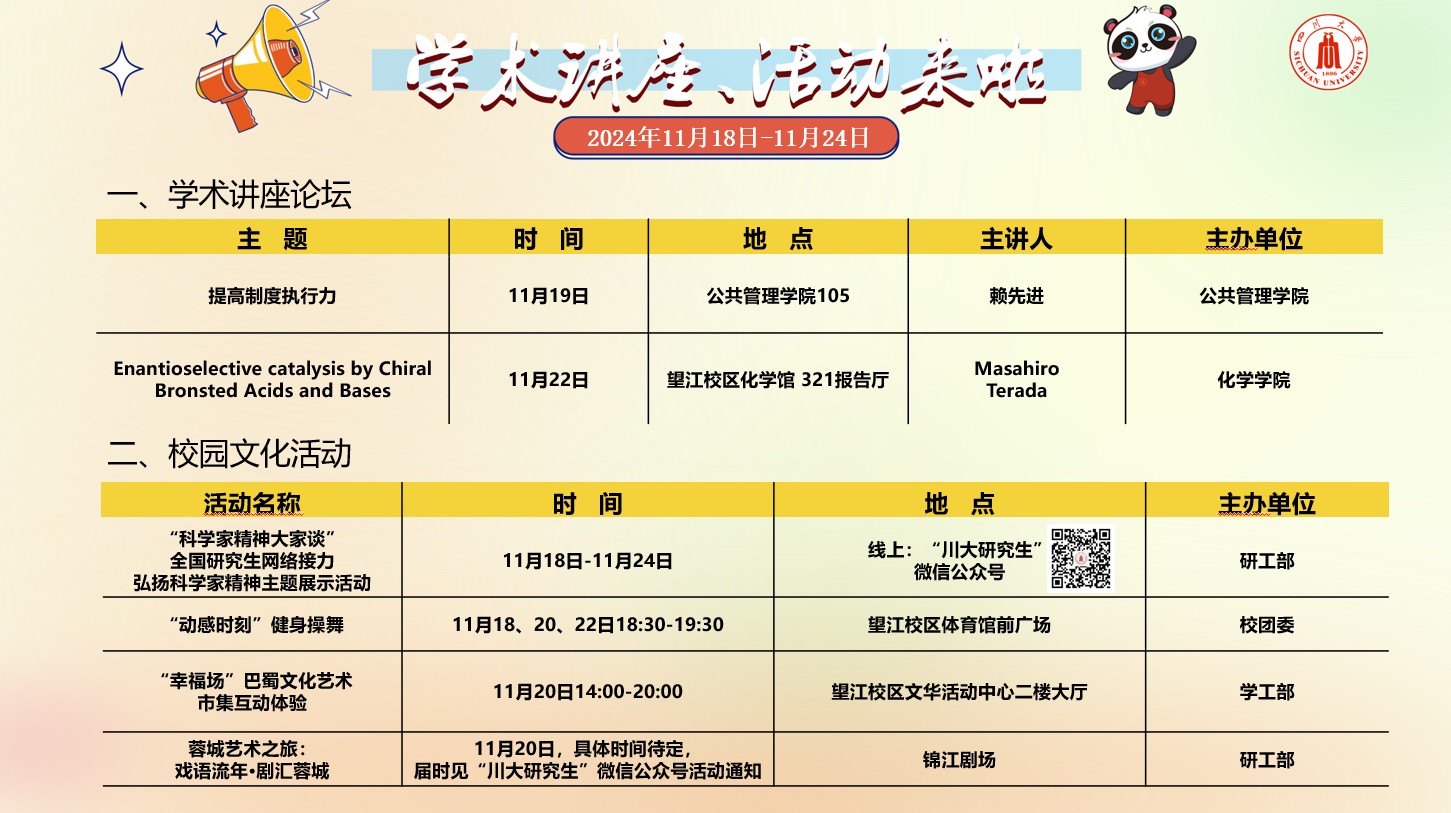 太阳成集团tyc151cc2024年11月18日-24日学术讲座及校园文化预告