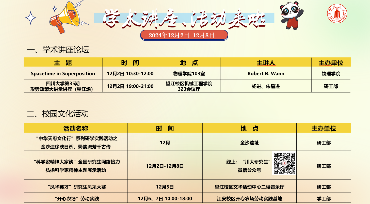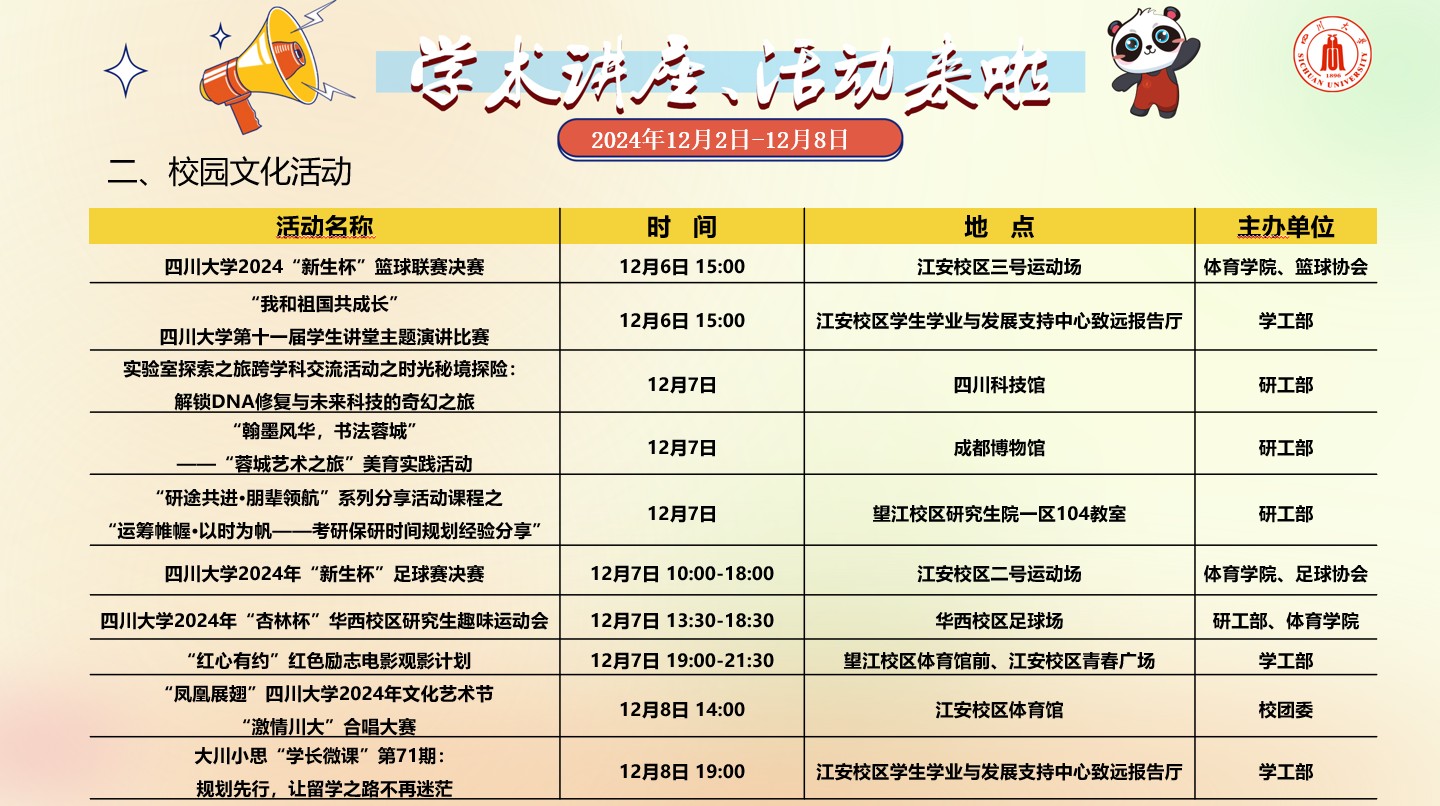 太阳成集团tyc151cc2024年12月2日-12月8日讲座及校园文化预告