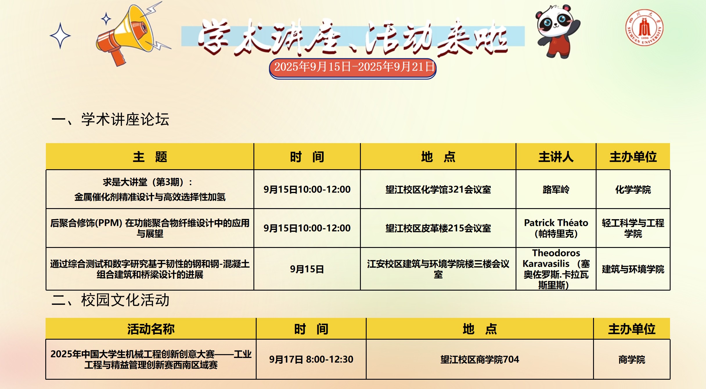 太阳成集团tyc151cc2025年9月15日-2025年9月21日校园文化活动预告