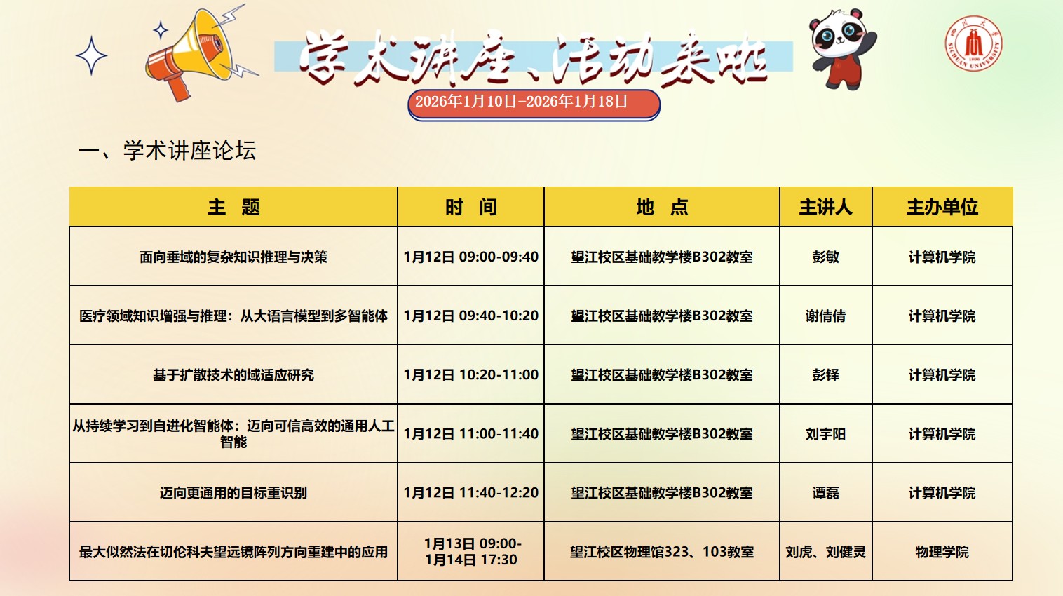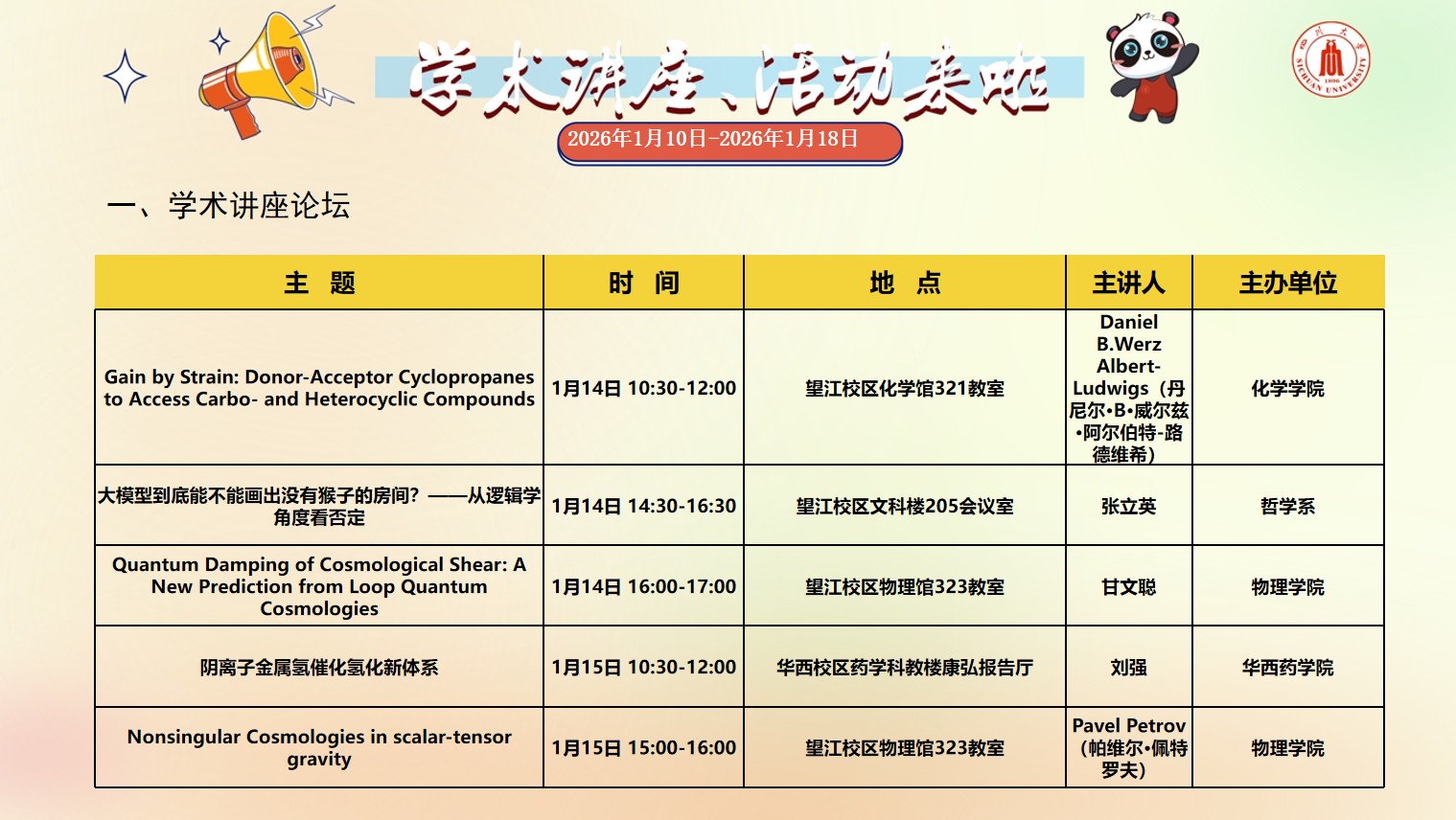 太阳成集团tyc151cc2026年1月10日-2026年1月18日学术讲座预告
