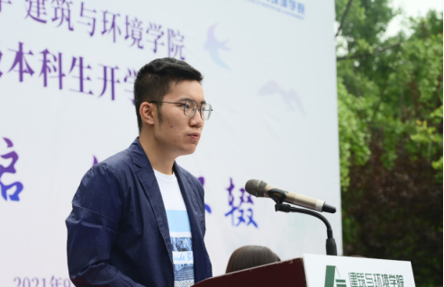 公司2018级工程力学专业赵灿同学作为在校生代表同新同学们分享了自己对老员工活的感悟。她结合自生成长经历,激励新生要勇于尝试、学会专著,也期望未来在祖国的建设事业上和各位学弟学妹一路奋勇前进。2021级土木工程专业曾禹钦同学代表新生发言。过去,他见证了土木人逢山开路、遇水架桥的不屈向前,历经了家乡基础设施建设和城乡面貌的蝶变升级……这些,都不断坚定着他的土木梦想。如今,建环成为了他梦想的新起点,他希望能在未来回到家乡,建设家乡,实现自己的人生理想。此外,他还号召各位新同学要学会宽容、学会尊重、学会自律。