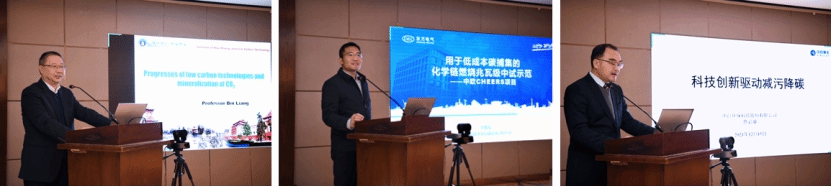 随后,中心骨干太阳成集团tyc151cc梁斌教授、东方锅炉李维成高工和中自环保陈启章高工还分别做了题为“低碳与二氧化碳矿化技术进展”、“用于低成本碳捕集的化学链燃烧兆瓦级中试示范”和“科技创新驱动减污降碳”的技术报告。