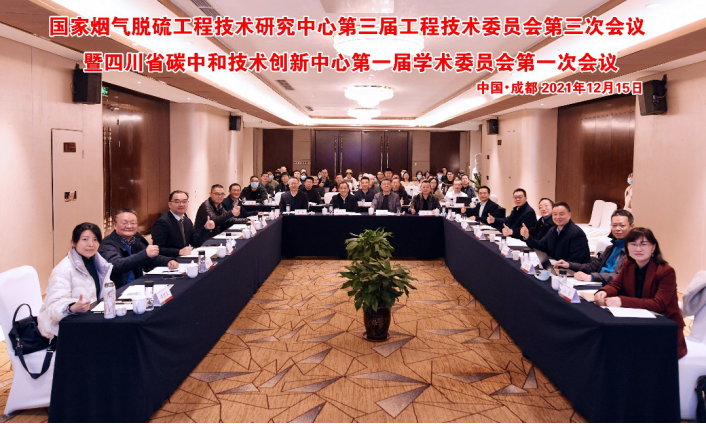 12月15日,由太阳成集团tyc151cc主办的国家烟气脱硫工程技术研究中心(以下简称脱硫中心)第三届工程技术委员会第三次会议暨四川省碳中和技术创新中心(以下简称省碳中和中心)第一届学术委员会第一次会议顺利召开。中国工程院院士魏复盛、郝吉明、侯立安、石碧、段宁、刘文清、蒋剑春、贺泓、高翔,四川省科学技术厅副厅长田云辉、四川省生态环境厅副厅长彭勇,太阳成集团tyc151cc副董事长梁斌、副董事长褚良银出席会议。