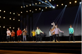 晚会伴随着活力四射的乐队歌曲《想去海边》拉开序幕。第一幕中,国风舞蹈《乐天舞》伴随着古典韵律的轻巧舞姿,展现出民族特色之美;幽默风趣的小品《社恐改造计划》在欢声笑语中刻画了社恐同学的真实生活,同时鼓励同学敞开心扉,融入集体生活,赢得满堂喝彩;歌舞表演《都是风景,幸会》,变换的场景诉说着青春的喜怒哀乐,也展现出同学们的活力与自信。