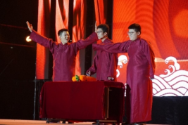 第三幕中,相声表演《建环number one》用诙谐幽默的语言,与之前表演的同学老师们“隔空互动”,结合老员工活抖包袱的同时,展现了奋发向上的生活态度;歌曲《淋雨一起走》用强烈的节奏感将晚会的氛围推向了高潮;朗诵《我在》彰显青年志气,令观众们激情澎湃;歌曲节目《烛光·逐光》悠扬动听,展现出新时代青年对美好生活的歌颂和奋斗追梦的姿态。