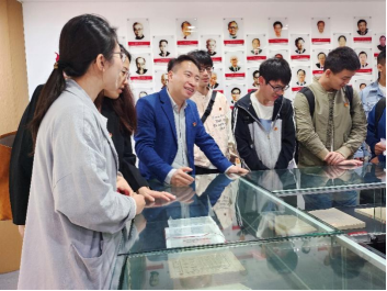 活动开始,江安图书馆淳姣、吴廷照、李晓蔚三位老师带领力学研究生党支部全体员工党员,逐一参观了江安图书馆的明远文库、明远展厅、学习书架和学习书屋等红色主题文化空间,重点讲解馆中陈列的江姐、朱德等革命家员工在校期间的成绩单等;还在学习书架带大家观摩学习了习近平总书记的阅读书目。