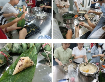 教室里,新鲜的箬叶和糯米散发着清香。尽管不少同学是第一次尝试制作粽子,但很快就掌握了技巧,叠叶、填料、扎捆,巧手翻飞下,一个个结实而饱满的粽子很快就在手中诞生。粽子各式各样、形态具异。在包粽子的过程中,老师和同学们也分享着自己家乡端午节的习俗,感受到其所蕴含的悠久文化历史与传统。制作完成后,大家齐力蒸煮粽子,在享用自己的劳动成果时,脸上都洋溢着喜悦的笑容。活动结束后,粽子被分发给了公司其他同学和老师,为他们送去一份端午祝福。