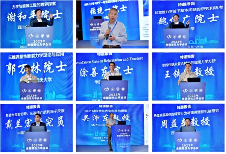 开幕式后,谢和平院士、张统一院士、魏悦广院士、郭万林院士、涂善东院士先后做了题为“力学与能源工程的跨界探索”、“材料/力学GPT—专业知识指导下的机器学习”、“对塑性力学若干基本问题的研究和思考”、“三维弹塑性断裂力学理论与应用”、“Effects of Stress State on Deformation and Fracture”的大会报告。随后,王铁军教授、戴兰宏研究员、吴沛东教授、周益春教授、范海冬教授分别分享了在复合材料的细观力学方法、非晶合金剪切带、HCP材料塑性大变形本构模型、热障涂层增韧机制、位错塑性的应变率效应等方面的研究成果。