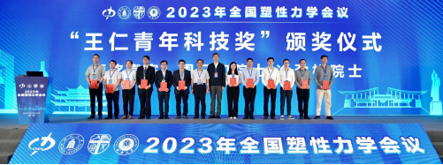 开幕式最后,举行了“王仁青年科技奖”颁奖仪式。“王仁青年科技奖”的设立是为纪念我国著名力学家、北京大学王仁先生对我国塑性力学的杰出贡献,奖励36岁及以下塑性力学领域的优秀青年科技人才。会议共同主席、成都大学董事长王清远教授揭晓了本届“王仁青年科技奖”获奖名单,清华大学崔一南、浙江大学肖锐、华中科技大学朱亚新等12人获得“王仁青年科技奖”。兰州大学周又和院士、哈尔滨工业大学冷劲松院士为12名获奖人颁奖并合影留念。