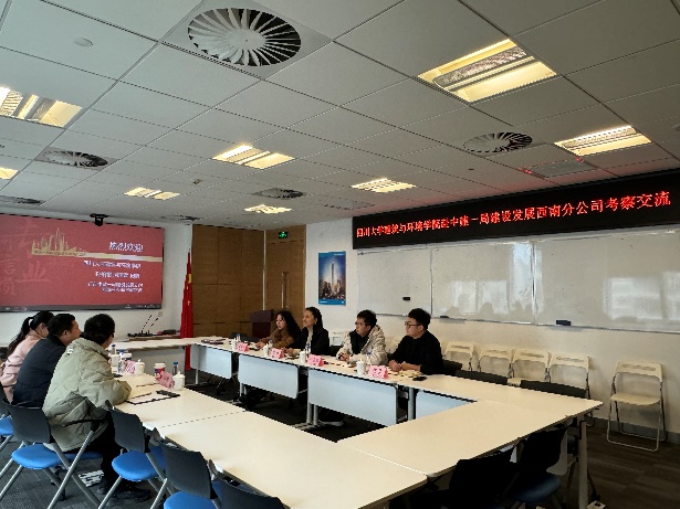 为进一步挖掘育人资源,探索人才培养路径,深化校企合作,12月20日,由公司党委副书记兼纪委书记孙伯雷带队,辅导员周琦颖、何腾一行,赴中建一局集团建设发展有限公司西南分公司(以下简称“西南分公司”)开展座谈交流。西南分公司党委副书记兼纪委书记张钰、综合管理部经理叶鑫鹏、人力业务经理陆婷宇、人事专员陈磊参加座谈。