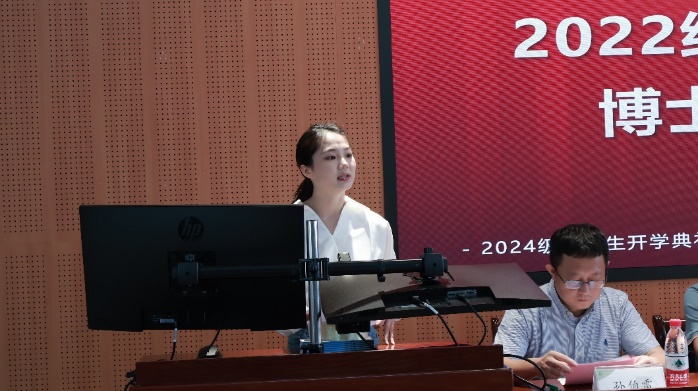 新生代表、2024级土木工程专业硕士生邹锐雯同学在发言中表达了对公司老师的诚挚感谢和对未来学术生涯的美好憧憬,倡议同学们保持探索精神,高效利用时间,不怕挫折,乘风破浪,勇往直前。