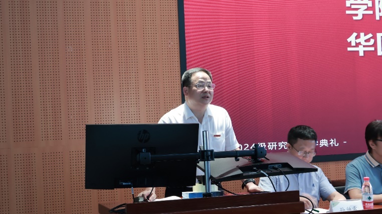 教师代表范海冬教授分享了自己的求学经历和工作科研经历,鼓励同学们珍惜时光,勤于思考,勇于探索未知领域,提醒同学们专注科研的同时注意身体健康,保持良好生活习惯。最后,衷心祝愿新同学们在研究生阶段能够度过一段充实而美好的时光,收获知识和成长。