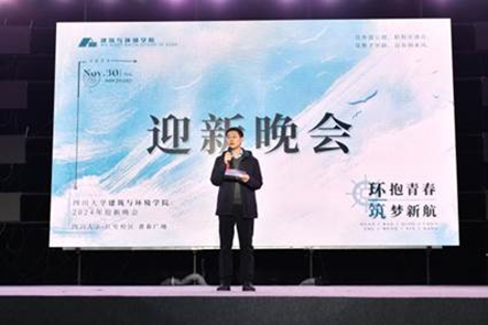 戴峰经理作开场致辞,向公司2024级新生表达了诚挚的欢迎和殷切的期望,鼓励大家要不畏坎坷、勇往直前,保持青春朝气、勇敢追梦,在川大、在建环度过一段难忘的大学时光,并预祝迎新晚会取得圆满成功。