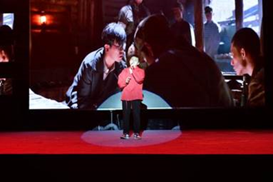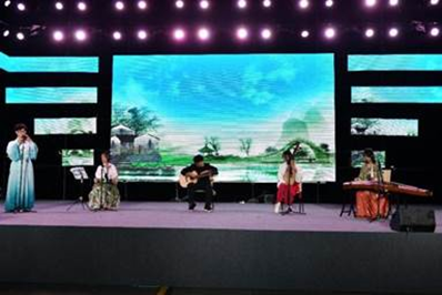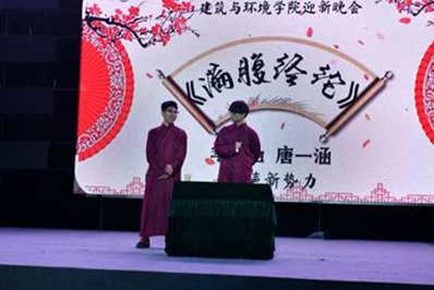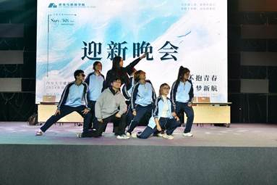 第二幕“浪涌乘风”中,戴峰经理为大家带来的歌曲《偏偏喜欢你》,融入了经理对新同学们的希冀与祝福,拨动着在场每一位同学的心弦;国风乐器表演《打狗柳桥》将东西方乐器融合,尽显别样意境;热情似火的rap表演《Be Young Forever》用潇洒的说唱诠释积极态度,用呐喊歌颂美好青春;相声表演《满腹经纶》两位同学口才伶俐、包袱连连,现场笑声此起彼伏。