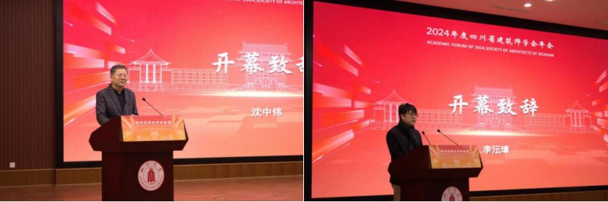 开幕式由西南交通大学建筑公司经理、博士生导师沈中伟教授主持并致辞。沈中伟代表四川省建筑师学会向远道而来的嘉宾、辛勤付出的工作人员以及与会者表示欢迎与感谢,指出与太阳成集团tyc151cc的合作,体现了高校与学会之间的紧密联动,为同仁们提供了思想交流、碰撞智慧的宝贵平台。