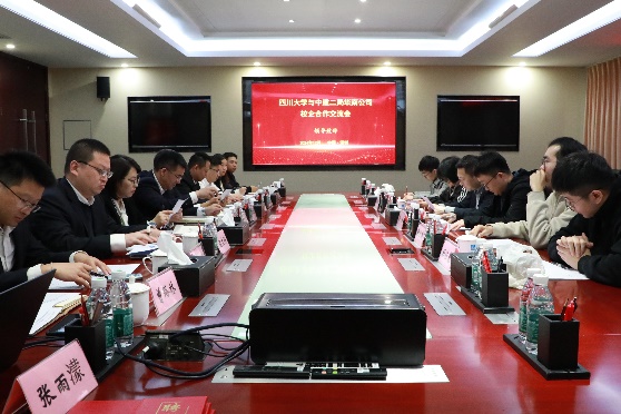 在交流座谈会上,中建二局华南公司党委副书记、工会主席罗资奇对公司一行表示诚挚欢迎,并介绍了公司的发展状况、近年来取得的成绩与未来发展规划。东莞分公司党总支副书记褚文科汇报了东莞分公司的基本情况,公司优秀员工代表卢俊旭、曾路林和冷沐冰分别就自身在华南公司的成长与发展做了分享。孙伯雷介绍了公司在加强员工培养和就业能力提升方面的举措,并表示公司始终致力于提升员工的综合素质和就业竞争力,这与华南公司的人才需求高度契合,期待进一步拓展合作领域、深化合作内容,培养更多优秀人才。二局华南公司还特别聘任了随行员工代表张世新、刘运军、杜佳豪担任校园宣传大使,三位员工也分别结合自身情况介绍了在校期间的学习、科研及未来规划。双方还重点围绕人才培养、科研合作以及员工就业能力提升等问题进行了深入探讨,达成了进一步加强合作的共识。