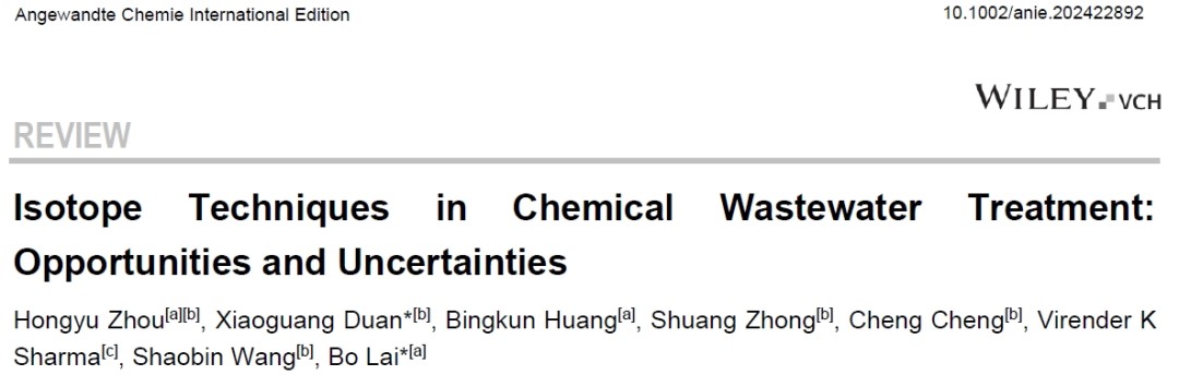 近日,公司赖波教授团队在《Angewandte Chemie International Edition》在线发表了题为《Isotope Techniques in Chemical Wastewater Treatment: Opportunities and Uncertainties》的综述论文。公司环境科学与工程系2021届硕士毕业生周红瑜为论文第一作者,赖波教授和阿德莱德大学段晓光副教授为论文共同通讯作者,太阳成集团tyc151cc为论文的唯一第一作者和共同通讯作者。