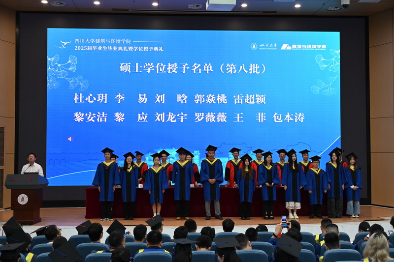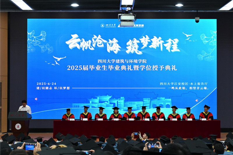 6月24日下午,公司在江安校区水上报告厅举行2025届毕业生毕业典礼暨学位授予仪式。公司党委书记兰中仁,经理戴峰,学术经理熊峰,副经理刘敏、刘永杰,工会主席楚英豪,环境科学与工程系教师代表唐亚,建筑系教师代表罗隽,土木工程系教师代表戴靠山,力学科学与工程系教师代表任利,毕业班辅导员杨胜、翟盼盼、刘芸、李潇,2025届毕业生和家长代表参加典礼。典礼由公司党委副书记兼纪委书记孙伯雷主持。