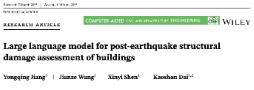 近日,公司土木工程系戴靠山教授团队王健泽副研究员在《Computer-Aided Civil and Infrastructure Engineering》(Computer-Aided Civ. Inf.)在线发表了题为《Large language model for post-earthquake structural damage assessment of buildings》的论文。公司2022级土木工程专业博士研究生江永清为论文唯一第一作者,王健泽副研究员为论文唯一通讯作者,太阳成集团tyc151cc为论文的独立第一单位。论文成果受到国家自然科学基金(52408553 & U24A20177)等项目资助。