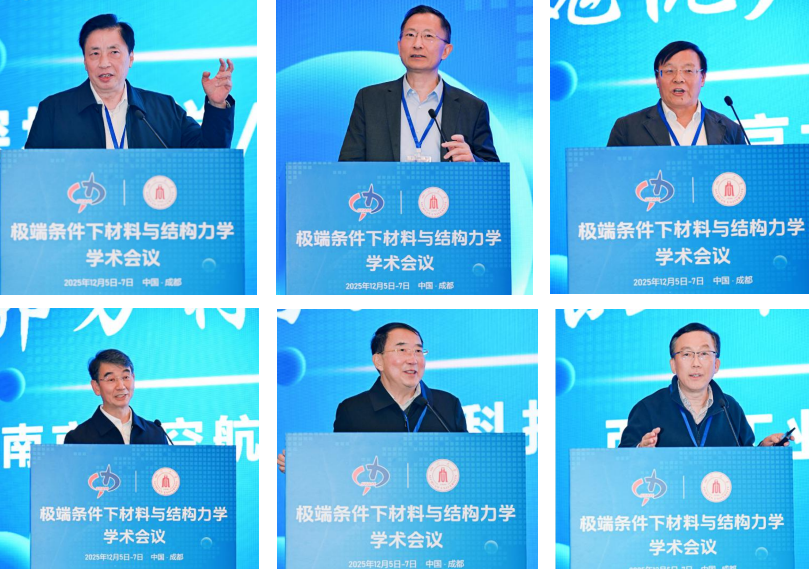 谢和平、高华健、魏悦广、郭万林、于起峰、张卫红先后以《月球保真取芯探矿与原位发电技术探索》《面向卓越疲劳稳定性纳米孪晶的力材料学》《极端条件先进材料力学行为的能量表征》《极长寿命极高可靠性的疲劳力学基本问题》《超大型结构变形监测的柔性相机网络动态测量》《多功能飞行器结构轻量化设计制造与应用》为主题做大会报告。戴兰宏研究员、张忠教授、康国政教授、申胜平教授、王清远教授分别针对金属高速切削剪切带涌现及调控、极端雷击防护的碳纳米复合材料、不锈钢焊接接头棘轮-疲劳交互作用实验与寿命预测模型研究、极高温材料力学性能原位测量及快捷制备、极低周和极高周疲劳行为等方面的研究做报告分享。