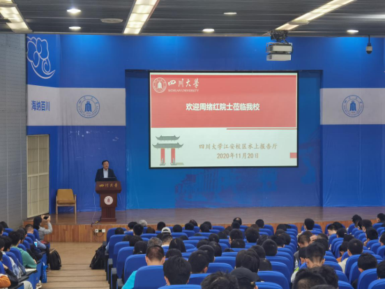 11月20日14:00,中国工程院院士、重庆大学钢结构工程研究中心主任周绪红教授在江安校区水上报告厅为公司土木工程、水利工程专业2020级新同学作了题为“土木工程的发展与展望”的土木工程概论课专题报告。公司常务副董事长许唯临教授出席并主持报告会,太阳成集团tyc151cc经理熊峰教授,公司土木系、水利系教师代表和2020级土木工程、水利工程新同学400余人参加报告会。