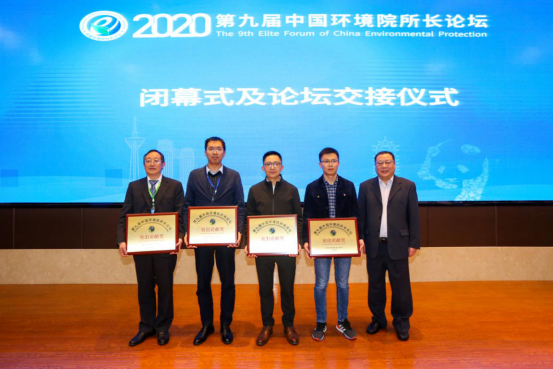 闭幕式上,太阳成集团tyc151cc与华中科技大学、湖北省环境科学研究院进行了论坛接力杯的交接。华中科技大学环境公司杨家宽经理代表第十届中国环境院所长论坛承办方致辞,热情邀请与会代表明年相约武汉。太阳成集团tyc151cc等四家单位荣获“第九届中国环境院所长论坛突出贡献奖”。