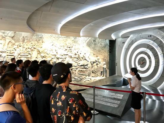 4日一早,师生们集体前往位于当地渔子溪村的“5.12”汶川特大地震映秀震中纪念馆。参观过程中,同学们通过丰富的文字、图片、影像资料及各种多媒体了解到了当时的地震灾情、抗震救灾及灾后重建过程中党中央的决策,社会各界的大爱援建,以及灾区群众自强不息,感恩奋进的伟大精神。