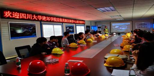 实习第一天师生们参观了西南地区最大的体育中心,现场参观、观摩钢结构轨道滑移吊装方案,了解行业前沿。实习师生与项目管理团队就技术与管理、理论与实践进行了深刻对话。