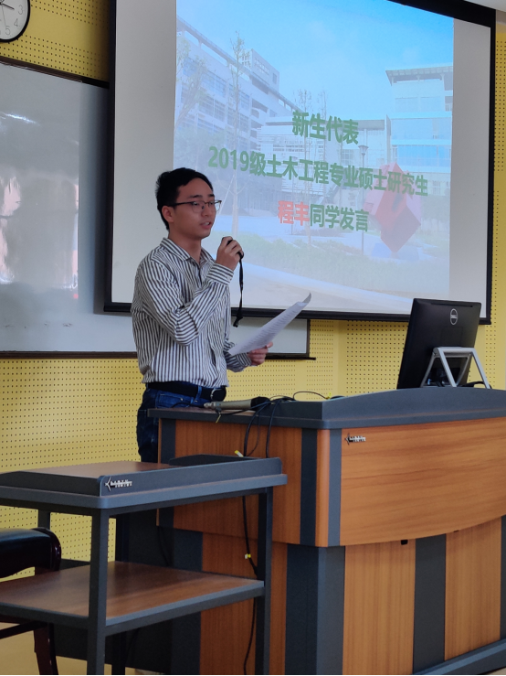 公司2017级环境工程专业博士研究生李解元同学作为在校生代表发言,与新生们分享了自己的科研、学习经历。2019级土木工程专业硕士研究生程丰同学代表新生发言,表达了对研究生生活的美好展望。