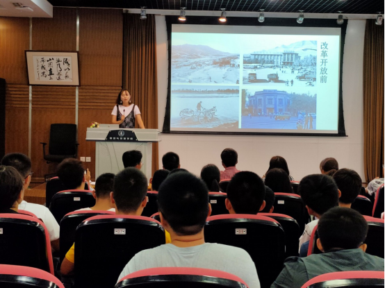 课堂上,来自全国各地的新生踊跃发言,结合个人学业规划及发展,畅谈自己眼中家乡改革开放和新中国成立以来的变化和切身感受。来自新疆的两位同学满含深情地描绘着家乡的种种变化,他们谈到家乡的交通,由闭塞阻碍到方便快捷;说到故园的生态环境,由贫瘠恶劣变得美丽丰饶;提到故乡的经济发展,由落后缓慢变得飞速蓬勃;还谈到家园的文化教育,由缺失匮乏变得多元融合。