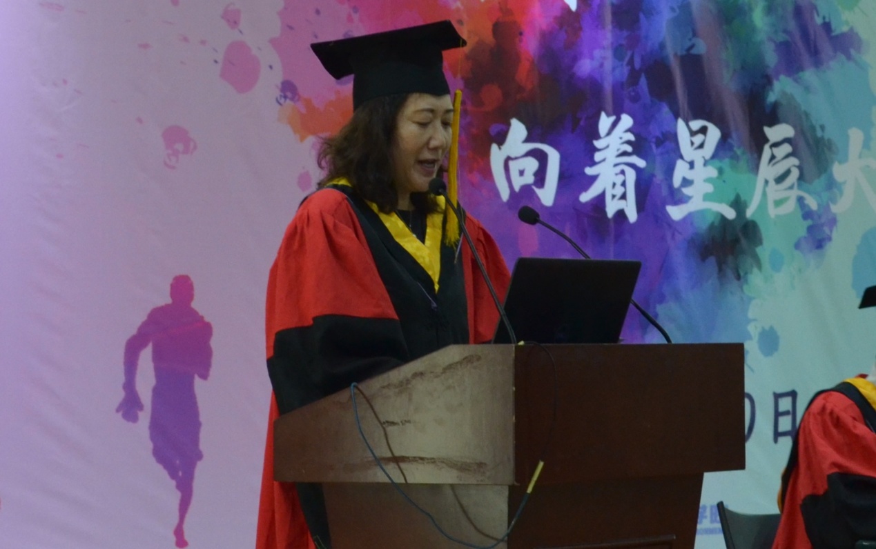 蒋文涛书记在致辞中以中美贸易争端的话题和现场毕业生进行互动。期望毕业生在走出川大,走向社会后,能保持初心、守住灵魂,念念不忘,必有回响!