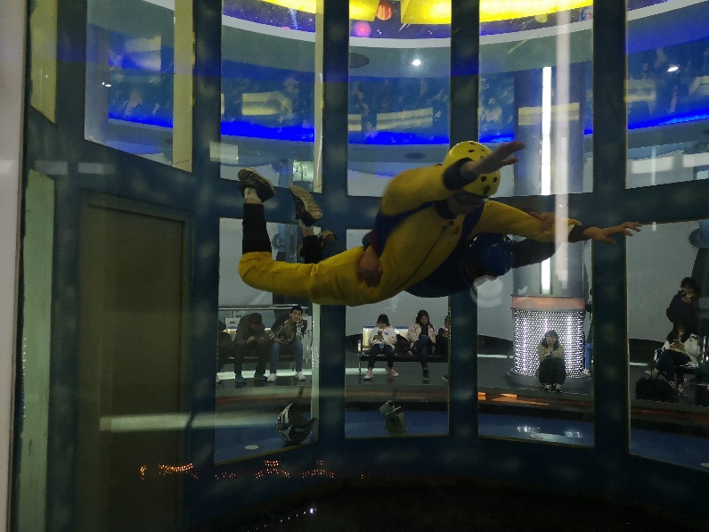 当日下午,全体成员来到绵阳科技馆。在风洞中,同学们真实体验了“飞行”的感觉,在空中悬浮装置中,通过人工制造和控制气流,把同学们 “吹”起来。同学们积极参加,气氛活跃,在体验过程中同学们深切感受到了风洞的强大威力,直观的了解了空气动力学知识和风洞实验技术,更深刻地体会到了流体力学的奥秘,并被其中的力学原理所吸引。