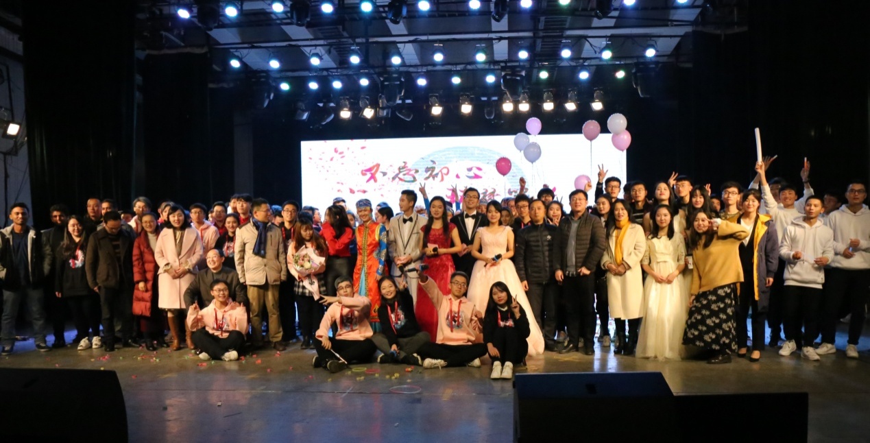 在青春热烈的音乐声中,公司领导、老师与全体演职人员合影留念,公司2017年本科生“不忘初心,环梦筑景”迎新晚会圆满落下帷幕。