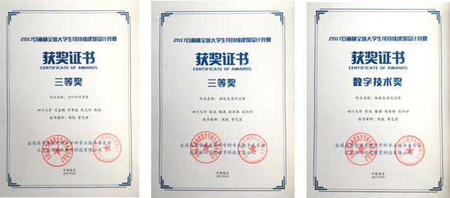 此次比赛中,在陈岚副教授、曾艺君副教授两位老师的指导下,公司建筑系员工取得了2个三等奖、1个数字技术奖和2个优秀奖的优秀成绩。