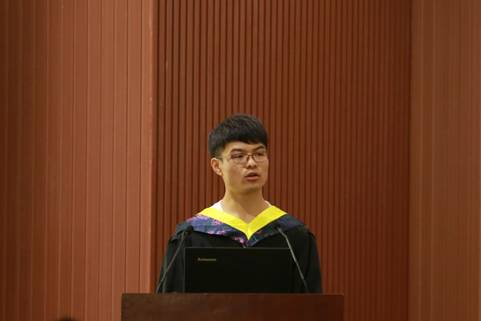 毕业典礼在庄严的国歌声中正式开始。经理熊峰教授首先祝贺公司2017届毕业生顺利毕业,希望毕业生同学在今后的人生旅程中要培养多学科思维意思,独立思考,注重创新,保持良好心态,秉持终身学习的态度。灾后重建公司经理柯瑞卿教授告诉同学们要选好自己的路,让自己的人生变得多彩。环境科学专业本科毕业生陈雪同学、土木工程专业本科毕业生钟爽同学和环境工程专业博士毕业生廖兵同学代表毕业生分别发言。他们在发言中感谢母校的教诲,怀念读书的美好时光,在今后的学习工作中一定会牢记老师们的嘱托,为公司争光,为母校添彩。公司党委书记蒋文涛教授在致辞中希望各位同学们一定要有强烈的社会责任感。