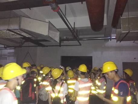 认识实习的第二天,同学们参观了中国电建集团兴隆83路和106路工程项目,项目负责人热情地为同学们介绍了道路工程的相关施工流程,电井、排水井等设施。项目负责人一路走,一路解说,对同学们提出的问题也给出了很详细的解释,同时也参观了天府新区的人工湖——兴隆湖,同学们感受到了工程所蕴含的巨大力量。下午,同学们来到了鑫信合中心安装工程施工现场,该工程的负责人带领同学们来到了大楼的标准层,介绍了安装工程的项目内容,包括电缆、消防管、排烟管等的敷设和安装,并带领同学们来到建筑地下室,感受了地下室错综复杂的管道布置,同学们认真听取了地下室管道和空调设备的施工布置要点。