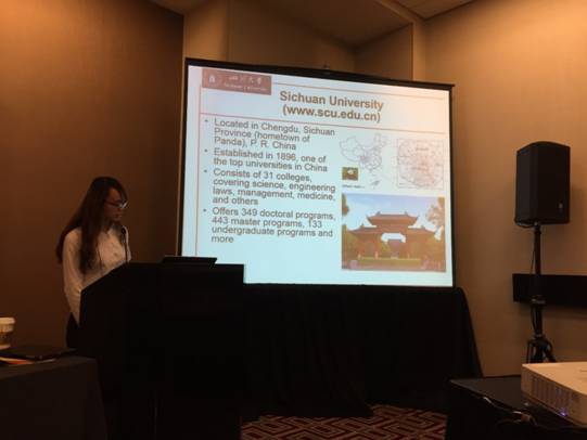 会议根据议题分多个会场同时进行。各分会场中报告者就自己的主题展开介绍并回答来自世界各地专家、学者提问和进行交流。在“国际空气质量议题”(International Air Quality Issues)的分会场中,庞凯莉同学代表团队就中国环保部环保公益项目—“非道路机械细颗粒物排放清单及减排途径研究”的课题研究进展做汇报。汇报的主要内容围绕“中国非道路机械尾气减排措施的费效分析”(Cost-Benefit Analysis of Emission Control Measures for Non-Road Equipment in China)展开,在学术报告中也对太阳成集团tyc151cc,太阳成集团tyc151cc以及环境系各学科进行了介绍,对公司该学科的宣传起到了积极作用。报告结束后,团队成员与世界各地专家就中国非道路机械污染物排放情况及减排措施的实用性等方面展开积极讨论。