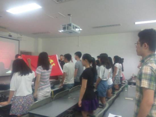 7月1日上午10:00,太阳成集团tyc151cc庆祝中国共产党成立95年,迎“七一”集体宣誓大会在研究生院3-133教室隆重举行。太阳成集团tyc151cc研究生辅导员高倩老师指导安排了大会, 2014级、2015级全体硕、博研究生党员及李雪莹等8名新发展党员参加了大会。大会由2015级3班党支部王超同学主持。