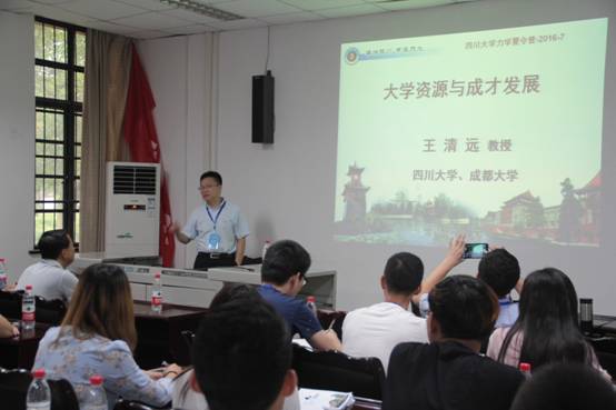 随后,国家杰出青年基金获得者、破坏力学与工程防灾减灾四川省重点实验室主任王清远教授,以“大学资源与成才发展”为主题,为营员们带来了首场专题报告。王清远教授从大学教育资源的分配、老员工对资源的利用与获取出发,结合其学科研究领域的成果与体会,为营员们带来了一场振聋发聩的讲座。在场的研究生志愿者听后反馈,要是在本科的时候能聆听王清远教授的这场讲座,他们在求学过程中将会主动获取更多的资源,为自己的人生找到更适宜的捷径。