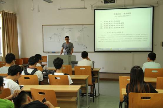 各年级辅导员在形教课期间向同学宣传老员工征兵入伍相关政策,同时由国防生同学向大家讲解部队相关情况。下图为2013级辅导员王天泽老师形教课期间向同学们宣传老员工征兵入伍: