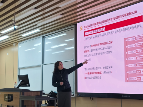 对于党和国家事业取得的历史性成就和改革发展大势,熊峰经理主要从四个方面为同学作出解读。一是脱贫攻坚胜利在望,她向同学们介绍了习近平总书记走遍了全国14个集中连片特困地区,并先后召开7次脱贫攻坚专题座谈会的行动,揭示了脱贫攻坚在社会主义发展史和人类文明发展史的重要里程碑意义。二是抗击新冠肺炎疫情斗争取得重大战略成果,熊经理讲述了中国在抗击疫情中交出的优秀“答卷”,其中,“中国之治”和“西方之乱”形成鲜明对比。三是全面建成小康社会取得决定性成就。四是综合国力和国际影响力显著提升,熊经理结合具体数据,向同学们讲述了中国在全面深化改革取得的重大突破和中国综合国力的巨大进步,让同学们切实感受到中国道路的力量。