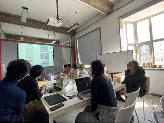 王辉老师主持的建筑本科三年级开放式设计课首先对员工前四周设计成果进行了简单总结展示,员工逐一畅谈中期评图的收获与感想。而后,王辉老师以员工作业为例,详细介绍了课程内容和特色。课程进行过程中,兰中仁认真与员工进行了交流。