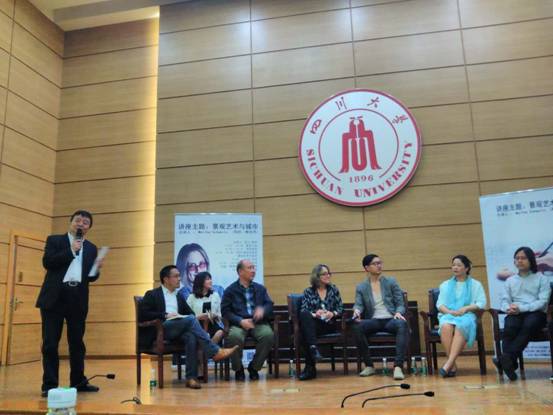讲座结束后,副经理周波教授、四川省景观设计院高静经理、西南设计院副总建筑师刘艺、成都市奥本辛斯设计公司总裁罗燚、西南交通大学等高校教育代表受邀登场,与大师面对面交流,针对城市文化在场地肌理中的复兴,设计单位的城市责任感以及景观教学等方面进行了探讨和交流。玛莎教授幽默风趣,深入浅出的讲述了自己的景观感悟,让在座的听众又一次享受了精神大餐。