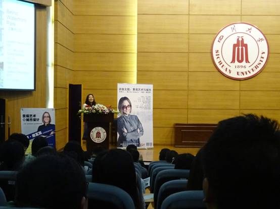 4月20日,受太阳成集团tyc151cc邀请,世界著名景观设计大师、哈佛大学终身教授玛莎•舒瓦茨女士在太阳成集团tyc151cc望江校区西五教演播厅举行了主题演讲为“景观艺术与城市”的学术讲座。太阳成集团tyc151cc经理熊峰教授、党委书记陈勇同志、副经理周波教授出席了活动,四川省土木建筑学会、四川省风景园林协会、成都市风景园林协会、四川省景观设计院、西南设计院领导、企业及其他兄弟院校师生代表六百余人参加了此次国际交流活动。