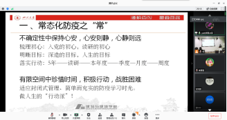 支部书记高倩讲授了“严守法纪 积极乐观——常态化防疫,向我看齐”的专题微党课。她介绍了当前国内外疫情防控形势和公司员工返校工作的开展情况,然后紧密围绕习近平总书记关于疫情防控工作的重要讲话和指示批示精神,从常态化防疫之“常”、常态化防疫期间的法律纪律、常态化防疫的身心建设、防“疫”向我看齐四个主题切入,引用真实案例,向全体支部党员讲解了疫情防控常态化中党员同志承担的责任和使命。高倩要求同学们以实际行动进积极响应党和国家号召,勇担时代责任,刻苦学习、献身科研,充分发挥党员先锋模范作用,确保打赢疫情防控阻击战。