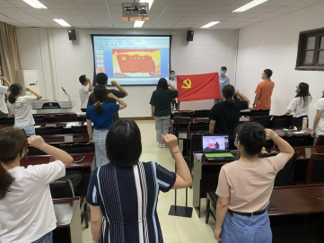 为庆祝中国共产党99华诞,进一步强化党员教育,充分发挥员工党员的先锋模范作用,公司研究生环工一支部全体党员于2020年7月8日上午在明德楼128多媒体教室通过线上线下相结合方式,开展了以“庆党的生日、讲战疫故事、悟初心使命”为题的“七·一”主题党日活动。