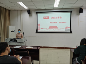 接着,胡建煜、秦玉莹等9位员工党员分享了身边的疫情防控故事。故事汇涵盖了大家熟知的英雄钟南山院士、身边的医护工作者、同学所在村镇的基层村干部、外卖员、快递员……身在日本的方宁杰同志向大家讲述了当前日本的疫情情况和防疫措施。