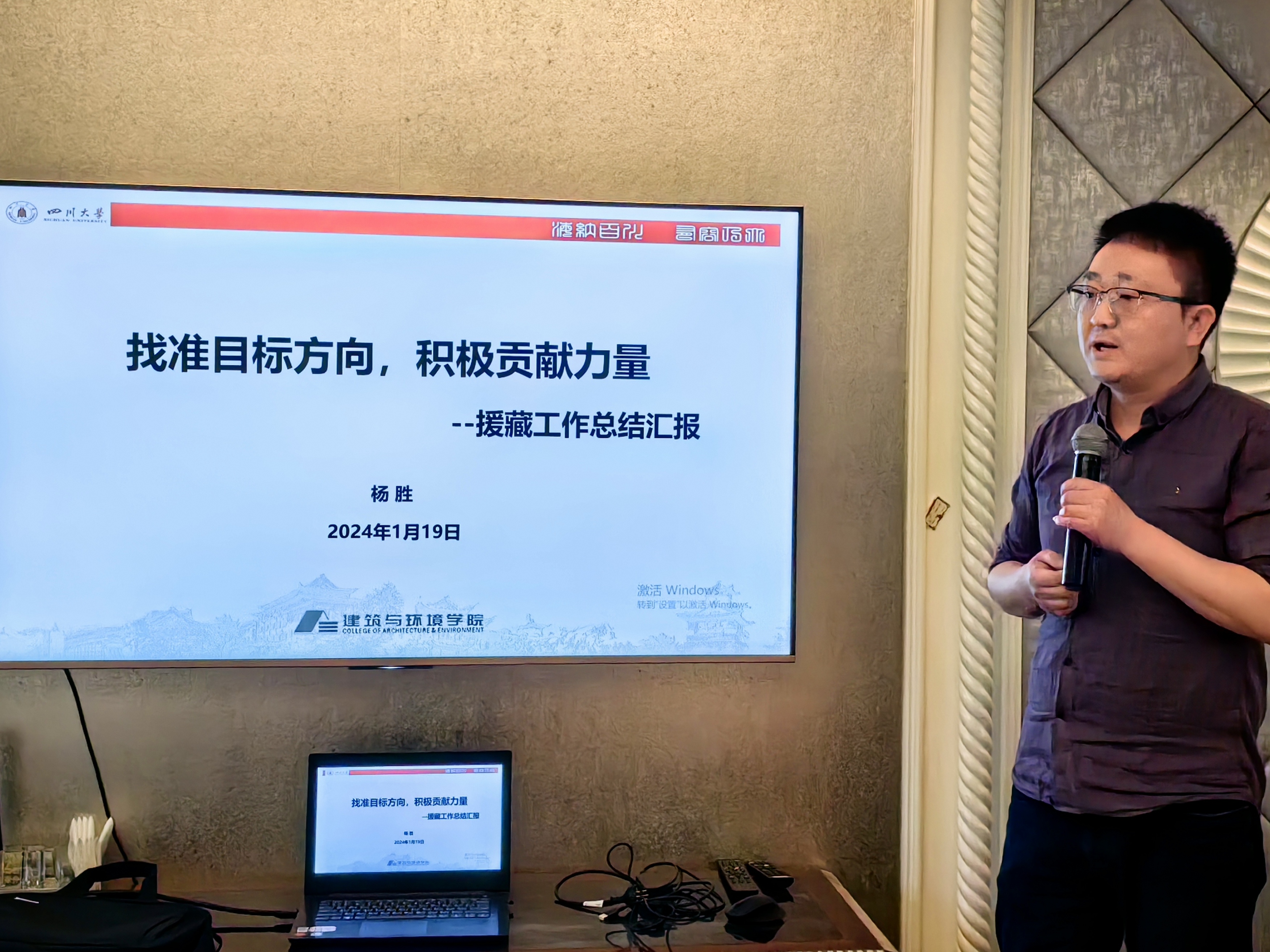 杨胜挂职期间,担任西藏大学员工工作部(处)副部(处)长,分管心理健康教育科、思想政治教育科(含国防教育办公室)。他以“找准目标方向,积极贡献力量”为主题,从工作、生活及感悟等三个方面介绍了挂职期间的点点滴滴。交流中,杨胜分享了在西藏大学负责的具体工作,工作中遇到的困惑、难点,以及重点工作,如推动公司心理健康教育工作的建设和完善、完成公司本专科员工档案室的跨校区搬迁、组织开展西藏大学第六届辅导员素质能力大赛等。与会者均被杨胜克服高原反应,沉下身子,投入工作的舍我精神震撼,也对藏区挂职干部的艰辛与不易有了深刻体会。