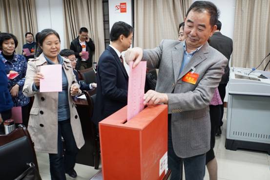 公司双代会代表将选票投入投票箱中