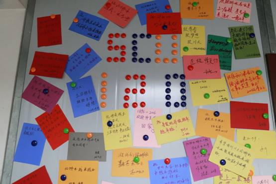 (签名墙前与员工一起合影)